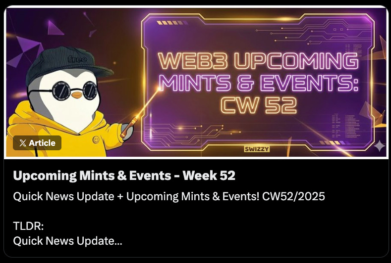 Quick News Update + Upcoming Mints & Events! CW 52/2025