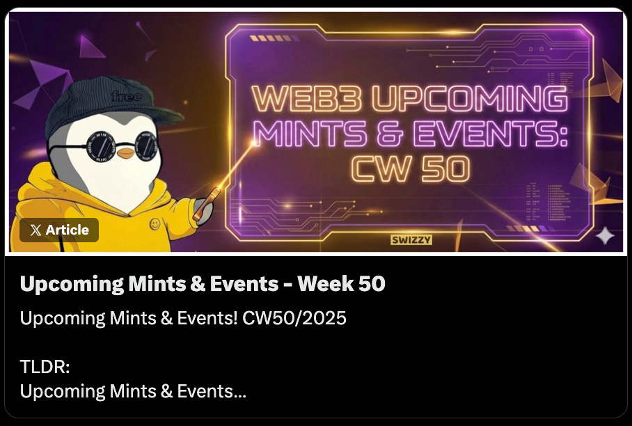 Upcoming Mints & Events! CW 50/2025 + Two more thing...